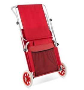 Veicoli non semoventi, cosiddetti lettini prendisole pieghevoli, per le foto vedere l’allegato, – con telaio in alluminio, – con superficie di appoggio in materiali tessili (poliestere) con cuscino e tasca aggiuntiva sullo schienale, – con tettuccio parasole regolabile individualmente fissato all’estremità della testa del telaio tramite montanti, – realizzati come lettini da spiaggia con le seguenti dimensioni: lunghezza circa 150 cm x larghezza circa 52 cm, altezza con tettuccio parasole circa 83 cm, senza tettuccio parasole circa 53 cm, – con due ruote in plastica, – possono essere utilizzati sia come lettini (attrezzatura da campeggio della voce 6306) sia, regolando la parte superiore del lettino e la protezione solare, come ausili per il trasporto (veicoli non semoventi della voce 8716); la base del telaio è utilizzata come maniglia di spinta/trazione per spingere o tirare a mano, – sono beni con funzioni diverse (attrezzature da campeggio/veicoli non semoventi) che non possono essere classificati secondo le Regole generali 3(a) e 3(b);