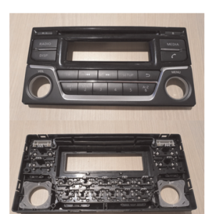 Frontalino rettangolare di un’autoradio, denomina to «pannello di controllo», contenente svariati pulsanti destinati ad attivare diverse funzioni della radio. L’articolo è fatto di plastica. I pulsanti/interruttori recano iscrizioni eseguite mediante proiezione laser. L’articolo è presentato senza componenti elettrici o elettronici.